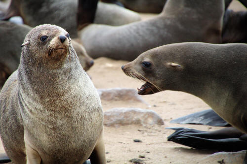 Wendy's Note: Talking to the owner of our flat the evening prior, we chatted about Cape Cross and he was very negative about going there. Also, reading the TripAdvisor Reviews, I too, was skeptical if we should go. This time of year is baby season. Sooooo many babies. The hyenas and jackal hunt them at night. Also, there isn't enough fish to support the colony so the babies die, or get hunted, or starve. The carnage can be a sight not for the weak stomached. We all decided this is a once in a lifetime experience to view over 200,000 seals in their natural environment doing what seals do. And then they spoke about the stank and sound. I worked on a farm in my college years. Buy some Vick's Vapor Rub and stuff it up your nose and across your top lip. No worries. I've got ear buds if the cacophony is deafening. It TRULY was the most amazing experience of my life! The carnage was nothing as the reviews or the owner relayed. Yes, we saw a few dozen dead babies, but Darwinism is being witnessed. This is truly beautiful, without sounding morbid. If a baby goes to a mama and it's not her mama, the mama growls, barks and bites the cub. The cubs rambles around aimlessly looking for her mama. The mama knows her baby by its scent and will not accept another cub. To experience this stage of nature's circle was truly amazing.