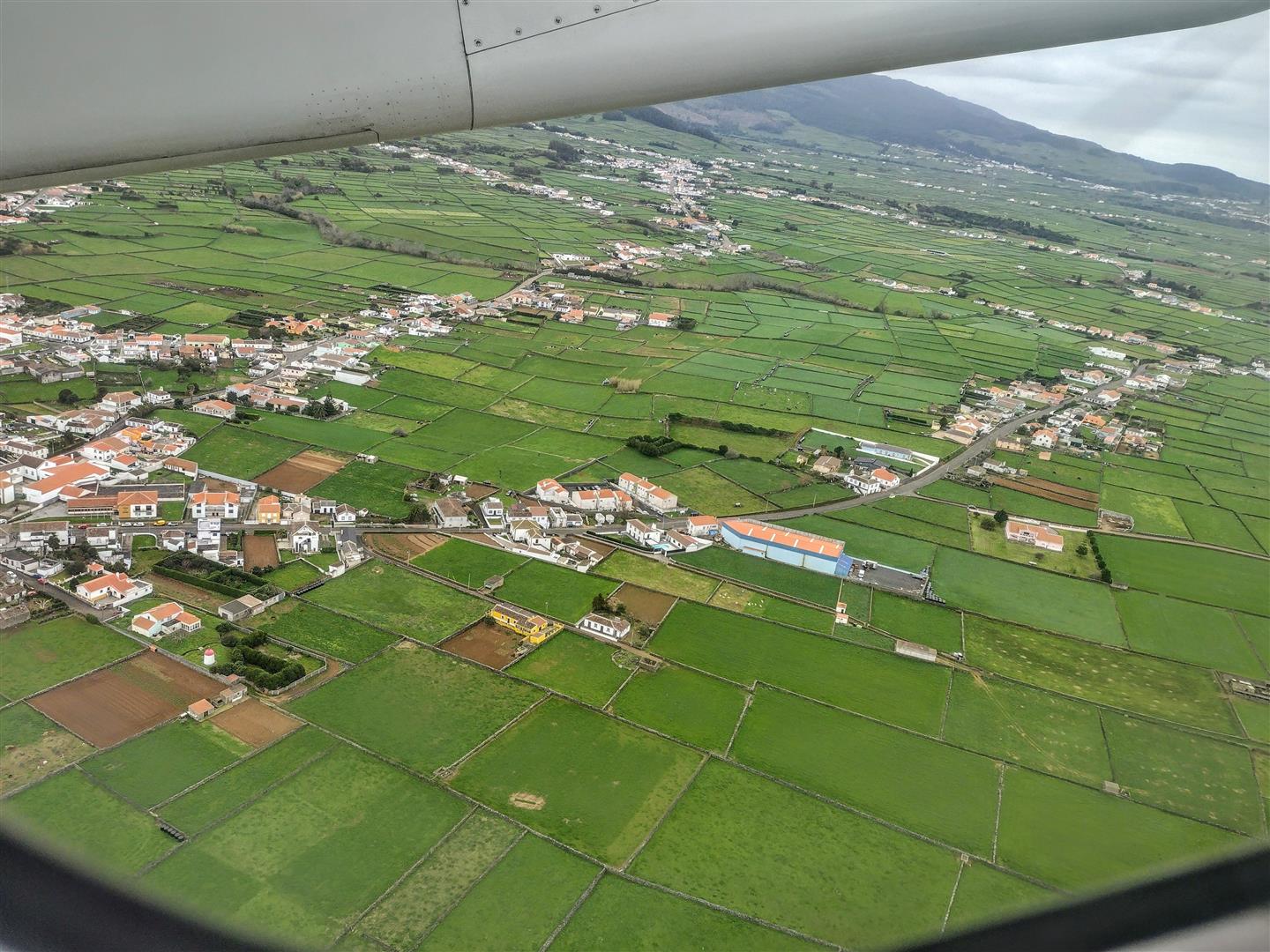 On our way to the airport, we ran into yet another cow jam, and a big one with probably over 50 cows. We had plenty of time before our flight so the 10 minute delay did not affect us. Well, actually it did. We were 10 minutes late in returning the rental car so we were charged an extra day. The lady at the car rental counter didn't care about the cow jam excuse. We're in SLOW season here people, it's not like people are lining up and you are running out of cars! However, it was completely worth the extra charge have have this fantastic sight as our send off from Terceira. The view from the plane as we left Terceira once again in a Q600 Dash 8 which seats about 78 people. The flight from Terceira to Pico was only 25 minutes. |