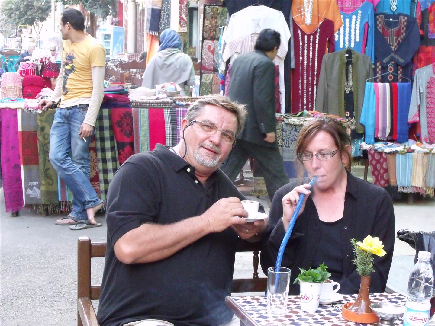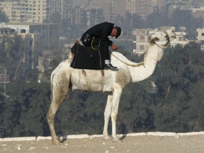 Cop asleep on the job overlooking Cairo. Wendy learning how to weave