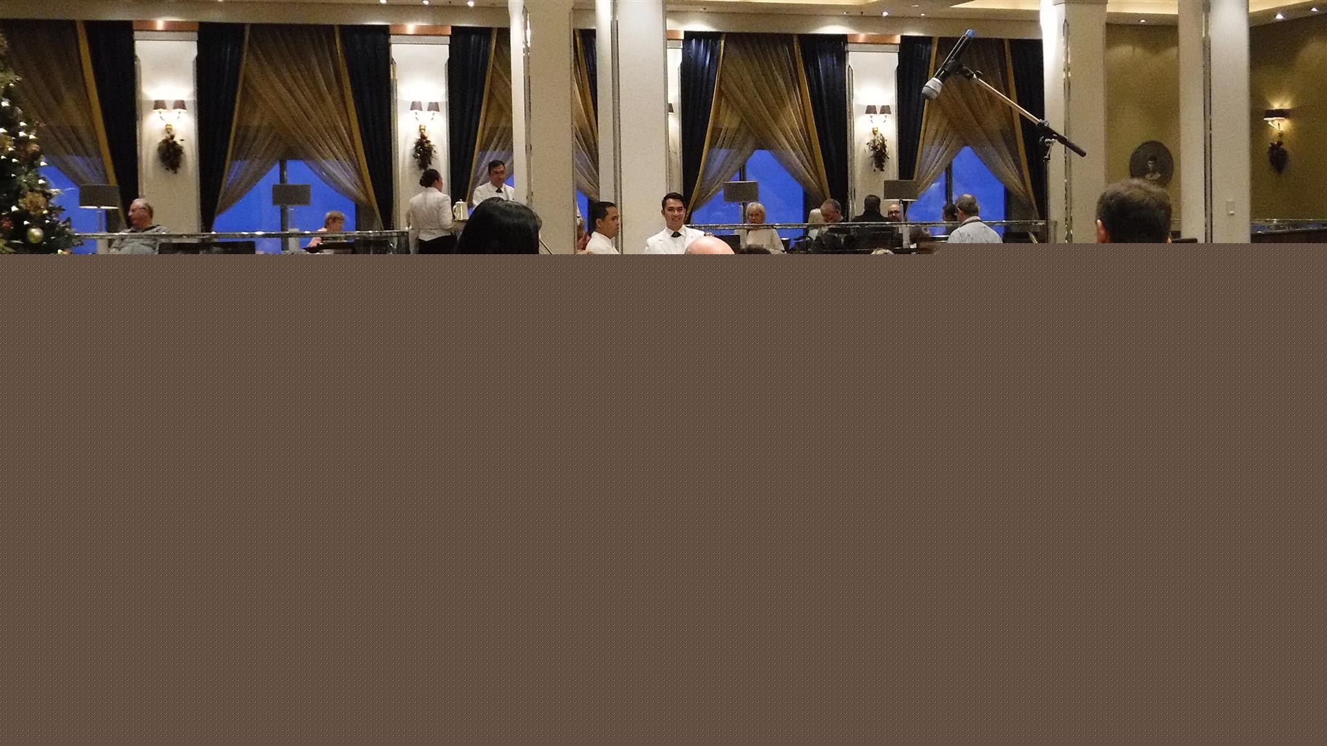 Loud Speaker Announcements: Unlike Carnival who has the "Chatty Patty" Cruise Director interrupting your day on a regular basis with various announcements about entertainment and Hairy Chest Competitions, on the QM2 there is only ONE announcement. The announcement is at noon by the captain giving our course coordinates, weather update and a brief history lesson. This announcement is not even piped into your cabin, public areas only; and there are NO other announcements at all over the PA system.